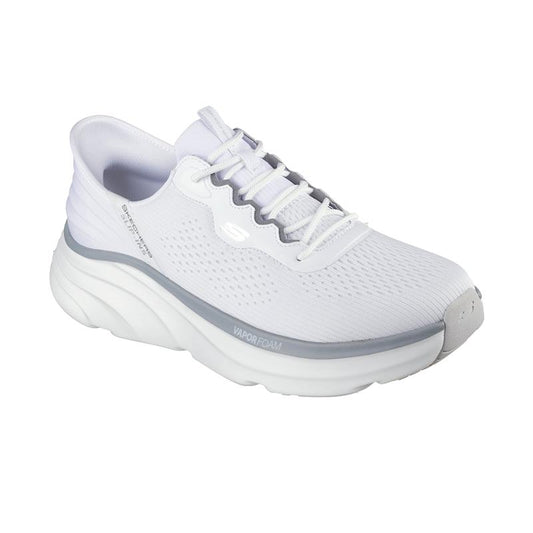 Skechers Hands Free Slip-ins™ 速穿科技,解放雙手,助你日常穿脫更便捷。展現時尚風格和舒適感。採用獨家的Heel Pillow™設計,牢固地包覆腳部,為您提供穩定舒適的體驗。
