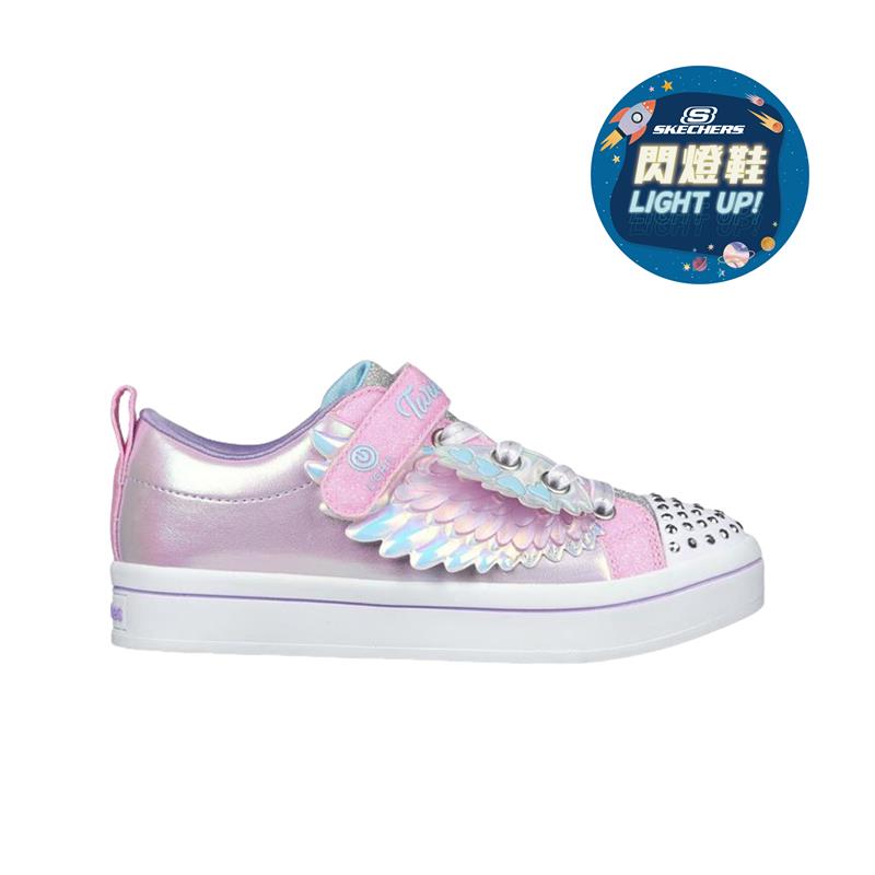 暢銷TWI-LITES 2.0的TWINKLE TOES系列大底,橡膠材質具有潮流復古氣息;半透明質感的漸變立體翅膀,飾以愛心圖案,幻彩酷炫,深受小女孩喜歡;鐳射革面拼接格利特材質,時尚可愛;鞋頭閃鉆裝飾,獨具特色;帶有閃燈開關,適合各種場合穿著;內側拉鏈設計,方便小朋友穿脫。備注:魔術貼,為一種輔料名稱。